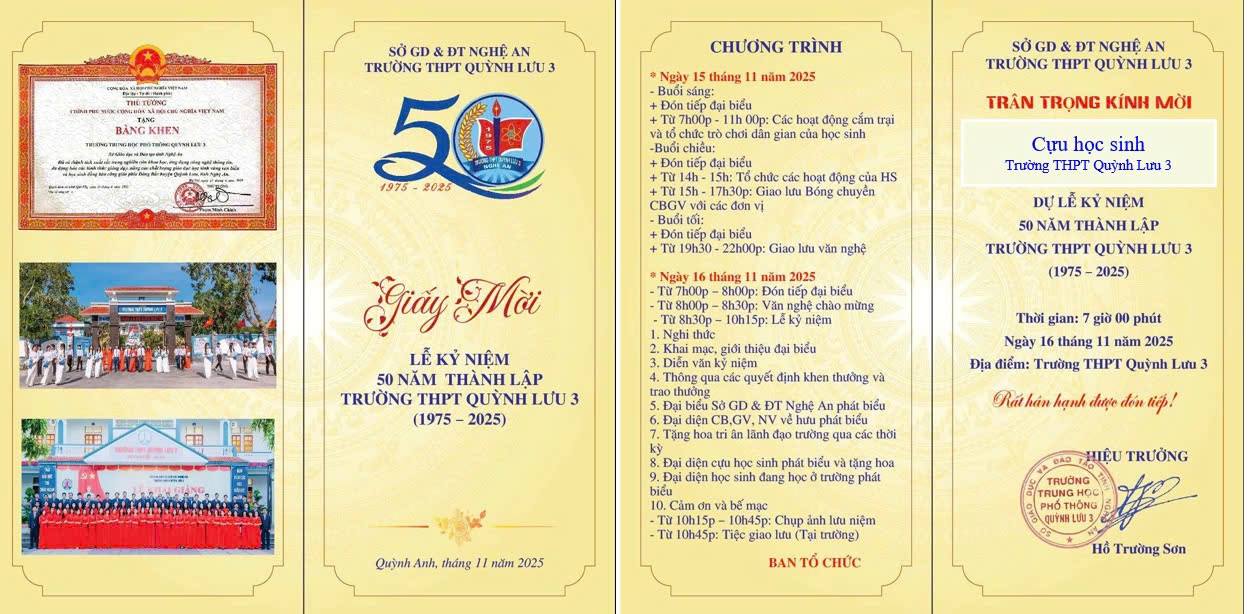THƯ CẢM ƠN VÀ KÊU GỌI ỦNG HỘ CHO LỄ KỶ NIỆM 50 NĂM THÀNH LẬP TRƯỜNG THPT QUỲNH LƯU 3